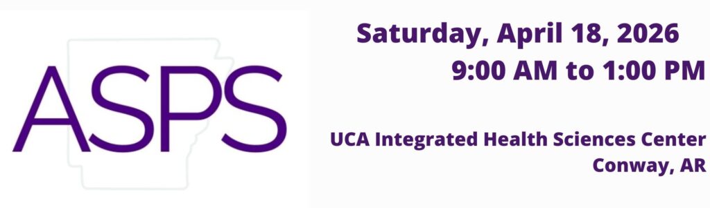 Research talks/posters can represent research in all stages (proposal to completed) and all research methods (e.g., qualitative, quantitative, archival). We also welcome reports on applied learning projects and activities. The ASPS is a time to connect and celebrate psychology in Arkansas.